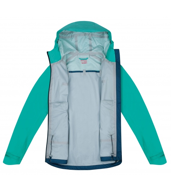 De Lamy L waterdichte dames outdoorjas is gemaakt van 3-laagse, ultralichte elastische stof, die comfort garandeert tijdens activiteiten in de natuur en in de stad. Het model heeft een trekkoord in de binnenzoom en slimme okselventilatie voor temperatuurregulatie en extra draagcomfort.