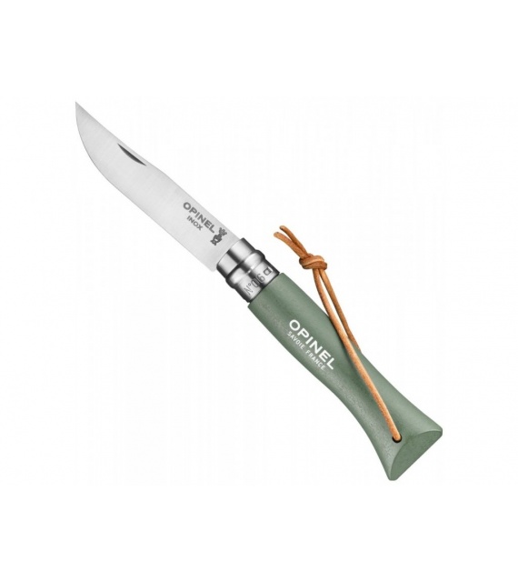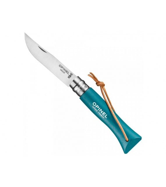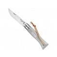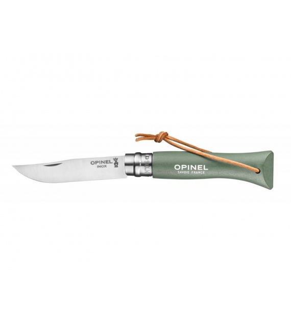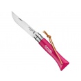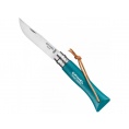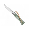 Kleurrijk Opinel zakmes met handvat van haagbeukhout en roestvrijstalen lemmet.