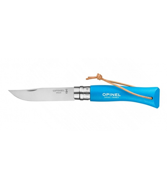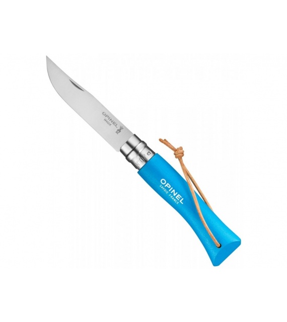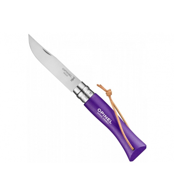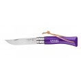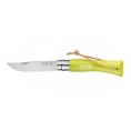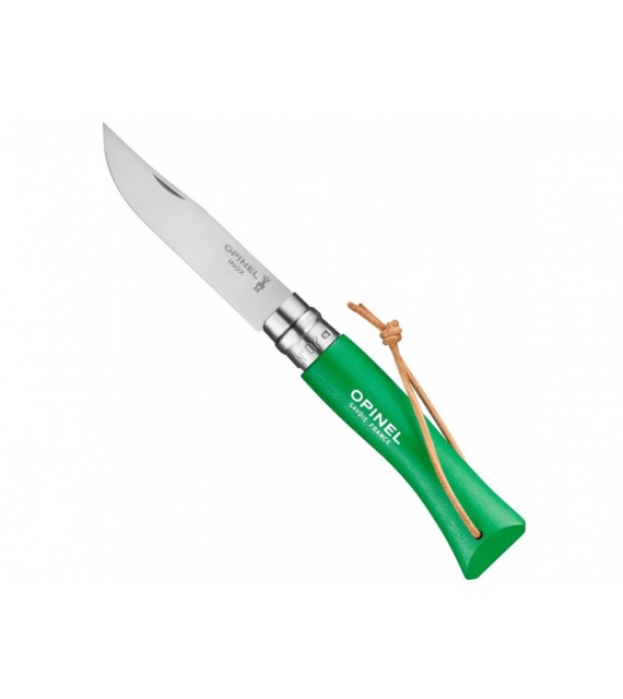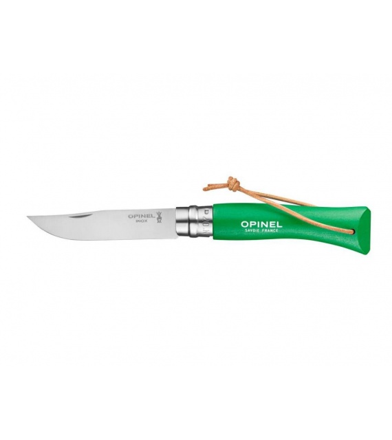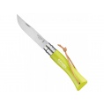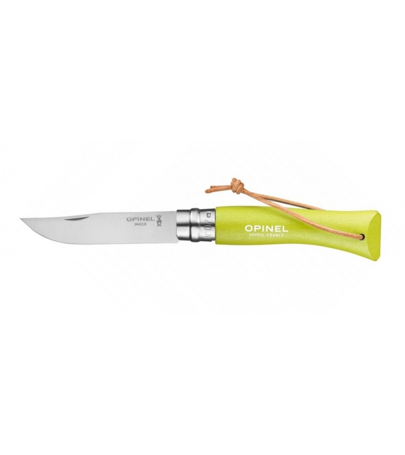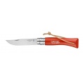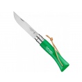 Kleurrijk Opinel zakmes met handvat van haagbeukhout en roestvrijstalen lemmet.
