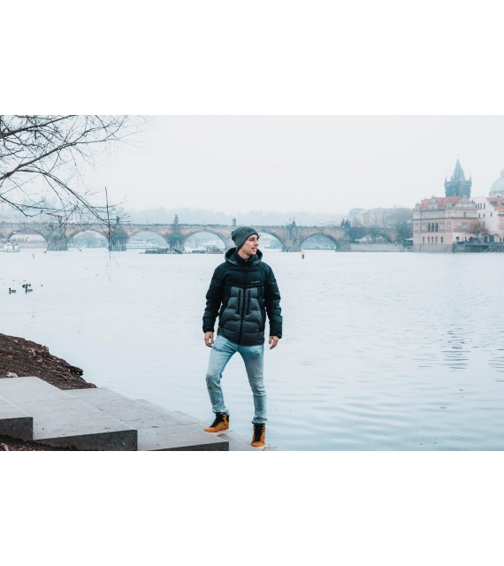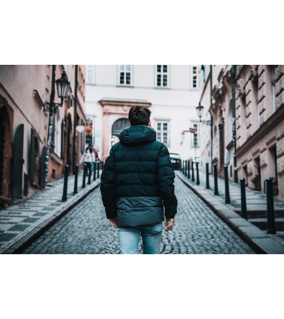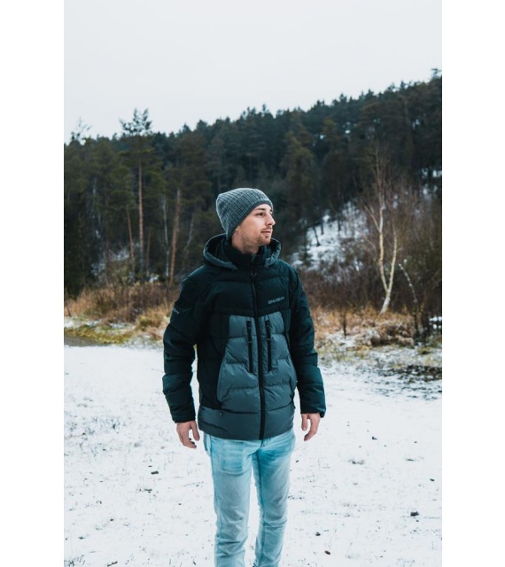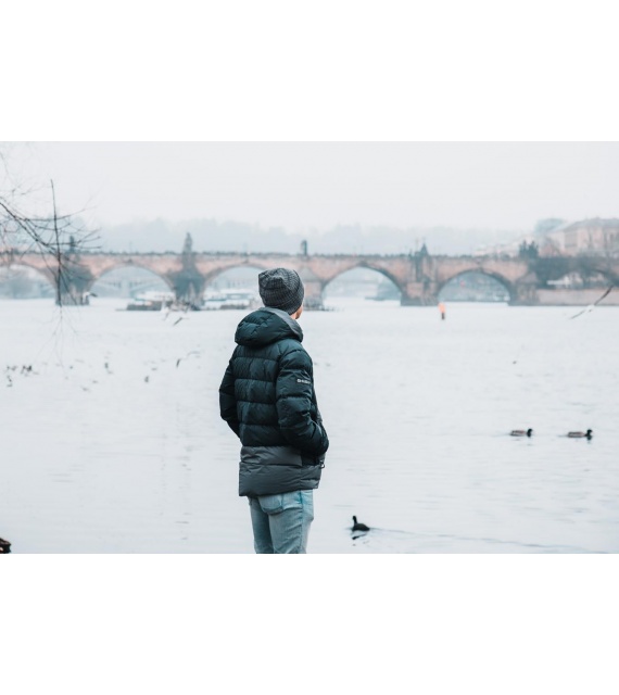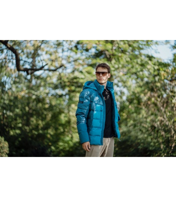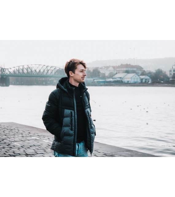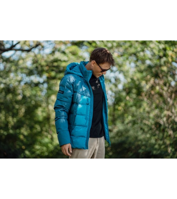 Lichtgewicht heren donsjas met capuchon voor winterse omstandigheden.
