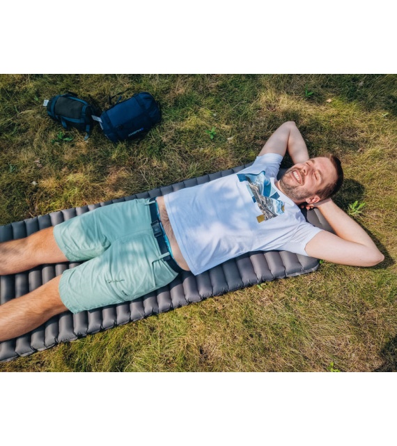 De Flary opblaasbare slaapmat is geschikt voor fietstochten, trektochten en andere outdooractiviteiten waarbij je elke gram moet besparen. Dankzij de luchtkamers in de lengterichting biedt deze mat een optimale gewichtsverdeling voor nog meer comfort en een goede thermische isolatie. Zo verhoogt hij de kwaliteit van je nachtrust overal en altijd maximaal.