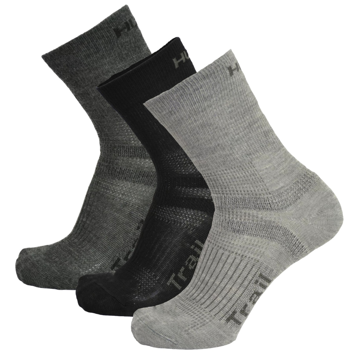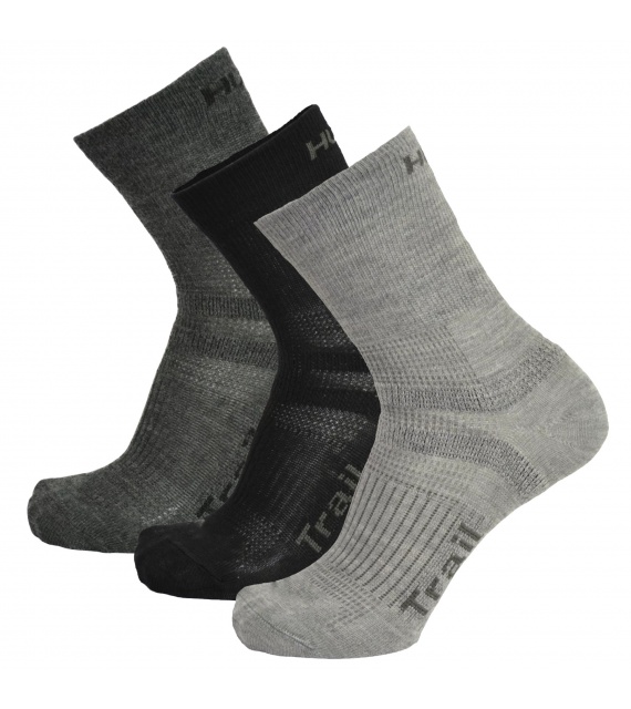 Trail zijn relatief dunne sokken die tot boven de enkel reiken. Ze hebben een versterkt voetgedeelte voor een zacht loopvlak en een versterkt teengedeelte om uitglijden te voorkomen. Ze zijn gemaakt van een mix van vezels met merinowol, wat zorgt voor comfort tijdens actief bewegen en lichte activiteiten.