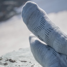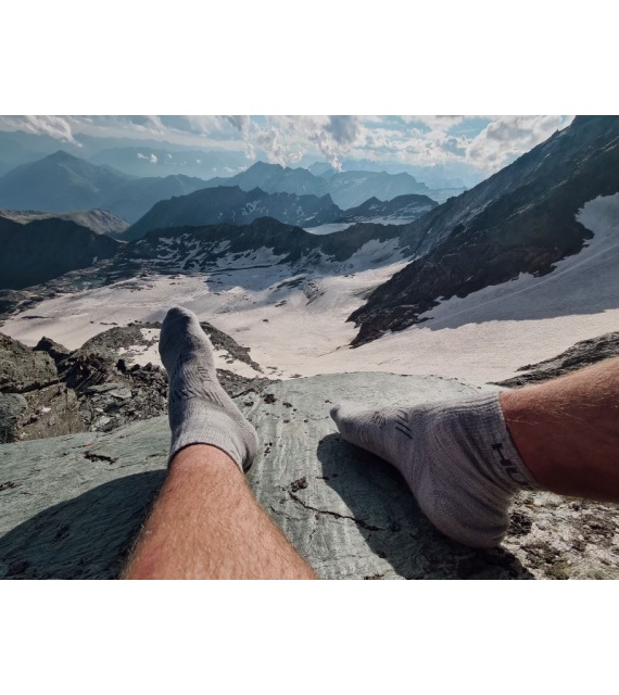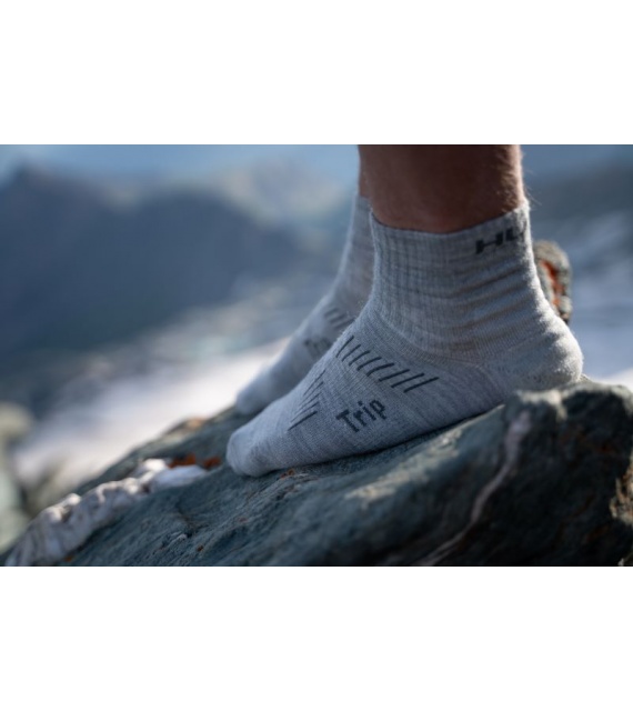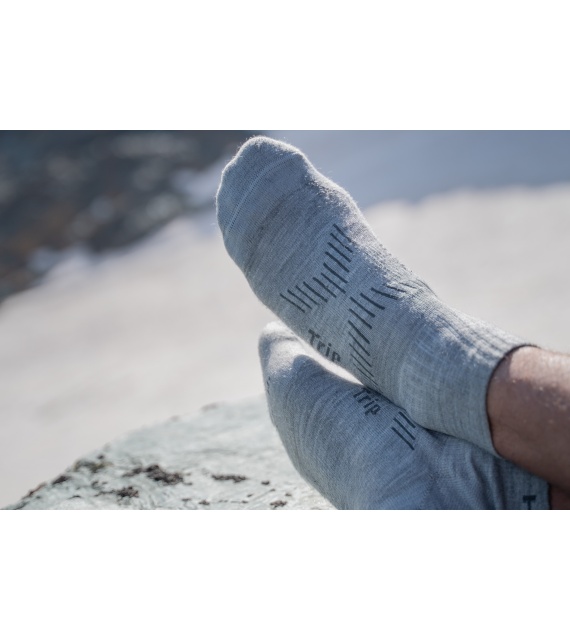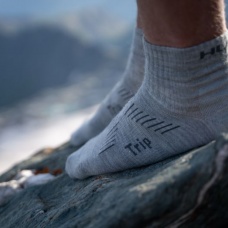 Trail zijn relatief dunne sokken die tot boven de enkel reiken. Ze hebben een versterkt voetgedeelte voor een zacht loopvlak en een versterkt teengedeelte om uitglijden te voorkomen. Ze zijn gemaakt van een mix van vezels met merinowol, wat zorgt voor comfort tijdens actief bewegen en lichte activiteiten.