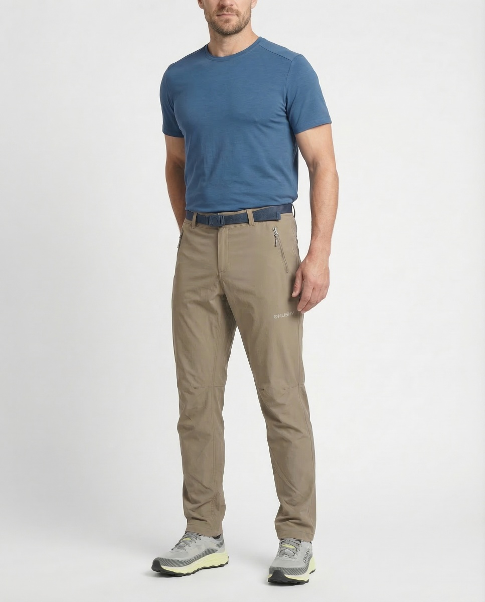 De lichte heren sportbroek Kone M met een comfortabele pasvorm is ideaal voor warme lente- en zomerdagen, voor veeleisende outdooractiviteiten en sportprestaties. De moderne snit en het ademende materiaal zorgen voor comfort bij elke stap.