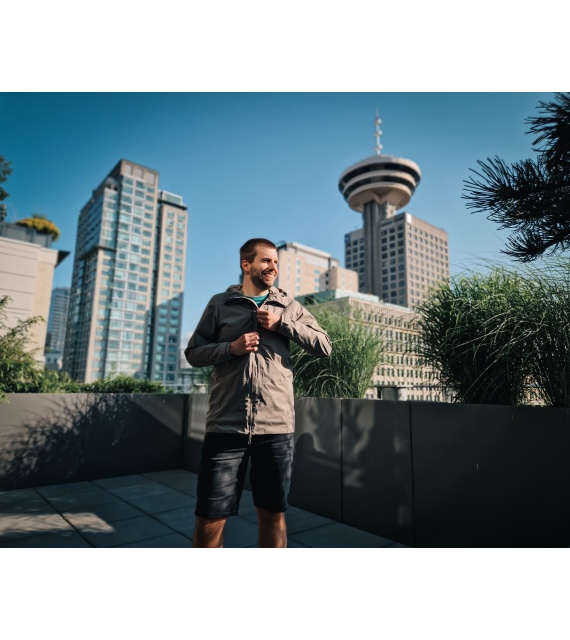 Lange hardshell herenjas met membraan, geschikt voor dagelijks gebruik in de stad en voor wandelingen in de lente en zomer.