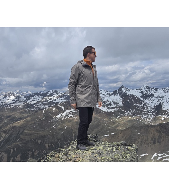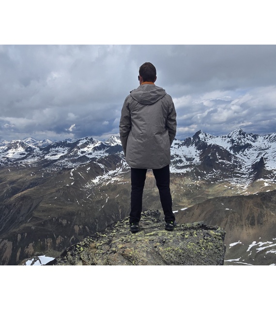 Universele lange hardshell herenjas met membraan, geschikt voor klassieke wandeltochten en zware omstandigheden in het voorjaar en de zomer.