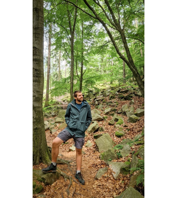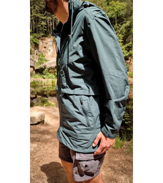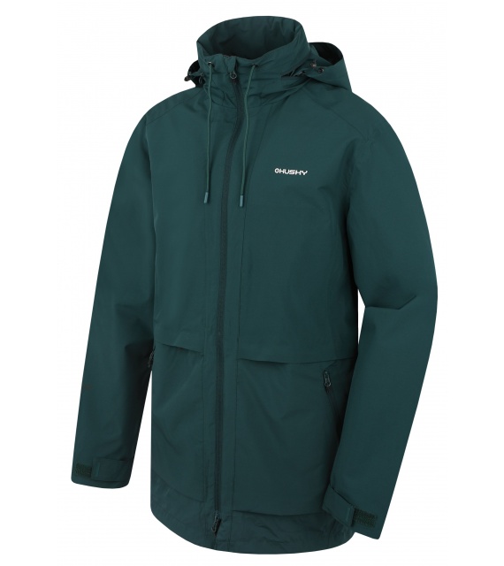 Universele lange hardshell herenjas met membraan voor wandelen (ook in zware omstandigheden) en dagelijks gebruik in de lente en zomer.