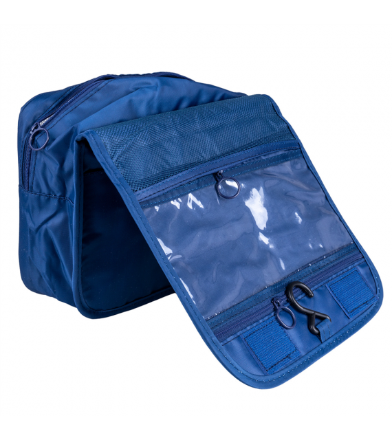 Praktische tas met haakje om op te hangen op de camping of in de natuur. Met deze toilettas heb je op reis alles bij elkaar en klaar voor gebruik zonder dat je spullen op de grond hoeft te zetten. Wordt zonder inhoud geleverd.