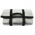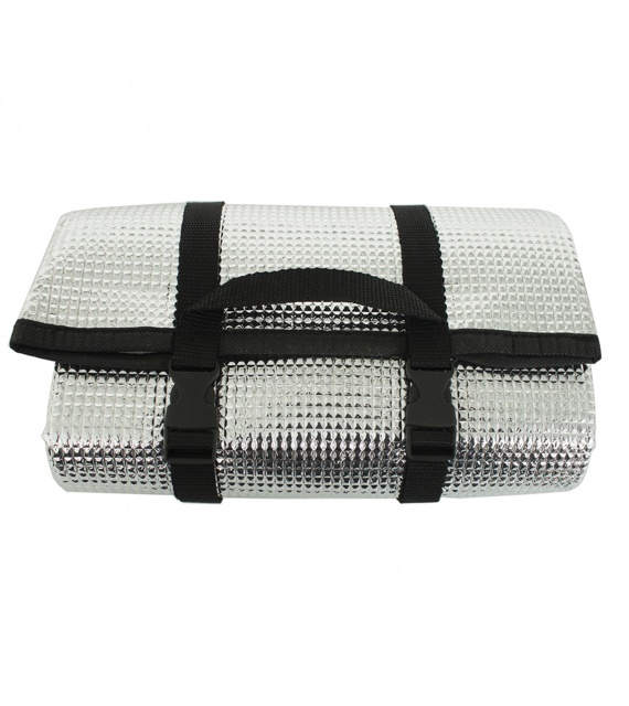 De isolatiemat is voorzien van reflecterende aluminiumfolie, die de uitgestraalde warmte terugkaatst (met de foliekant naar boven leggen). Hij is compact en erg licht. Ideaal voor wandel- en fietstochten in de zomer. Beschermt tegen kou, vocht en vuil. Is voorzien van riemen zodat hij als een klein pakket kan worden ingepakt en als tas kan worden gedragen.
