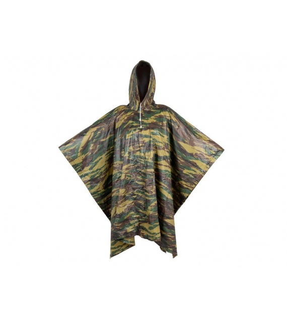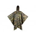 Lichtgewicht poncho met camouflagepatroon en capuchon, verstelbaar bij de hals. Zijkanten met rits waardoor de poncho gemakkelijk over het hoofd getrokken kan worden. Onder de poncho kan ook een kleine rugzak verborgen worden. 100% waterdicht materiaal, elektronisch gelaste naden. Universele maat.