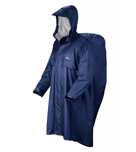 Praktische regenjas met capuchon en sluiting over de hele lengte van stevig lichtgewicht nylon ripstop materiaal en een aluminium isolatielaag. Waterkolom 2000 mm. Ruimte voor een rugzak tot 100 liter. Getapete naden. Geschikt voor een lichaamslengte tot 190 cm. De regenjas heeft een sluiting over de hele lengte. De mouwen zijn afgewerkt met elastische manchetten.