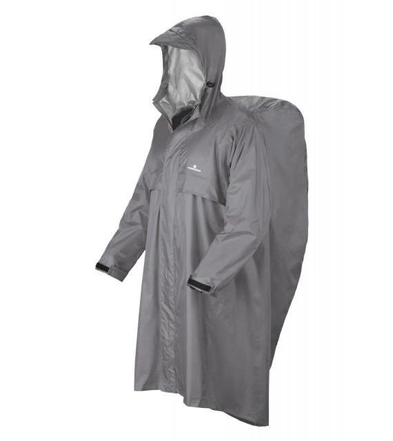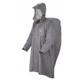 Praktische regenjas met capuchon en sluiting over de hele lengte van stevig lichtgewicht nylon ripstop materiaal en een aluminium isolatielaag. Waterkolom 2000 mm. Ruimte voor een rugzak tot 100 liter. Getapete naden. Geschikt voor een lichaamslengte tot 170 cm. De regenjas heeft een sluiting over de hele lengte. De mouwen zijn afgewerkt met elastische manchetten.