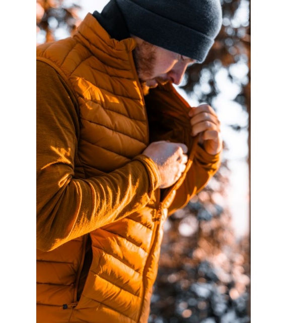 Neem de ultralichte, waterdichte Dresles M outdoor bodywarmer mee de natuur in. Je pakt hem gemakkelijk in de kleine zak in, zodat je hem bij de hand hebt wanneer je hem nodig hebt. Voor de binnenvulling hebben we hoogwaardige eendendons gebruikt, die uitstekende thermische isolatie biedt. Dankzij de waterafstotende DWR-behandeling is hij ook geschikt voor zware omstandigheden in de natuur.