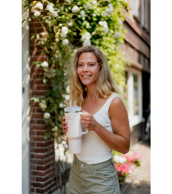 De smalle basis is zo ontworpen dat hij in vrijwel elke bekerhouder in de auto past. De Stanley Quencher heeft een ergonomisch handvat met een comfortabele grip, zodat je ijskoud water gemakkelijk mee kunt nemen naar je werk, je boekenclub, yoga, de sportschool of weekendtrips. Hij is ideaal voor drukke ouders die heen en weer reizen tussen huis en school, maar ook voor rustige, beginnende yoga-beoefenaars in hun zen-ruimte, waar de Quencher perfect is om gemakkelijk van te nippen tijdens het mediteren. De STANLEY Quencher is niet per ongeluk viraal gegaan, maar omdat je er moeiteloos, in alle rust en in stijl voldoende mee kunt drinken. De Stanley Quencher is niet zomaar een waterfles, STANLEY Quencher is een levensstijl.