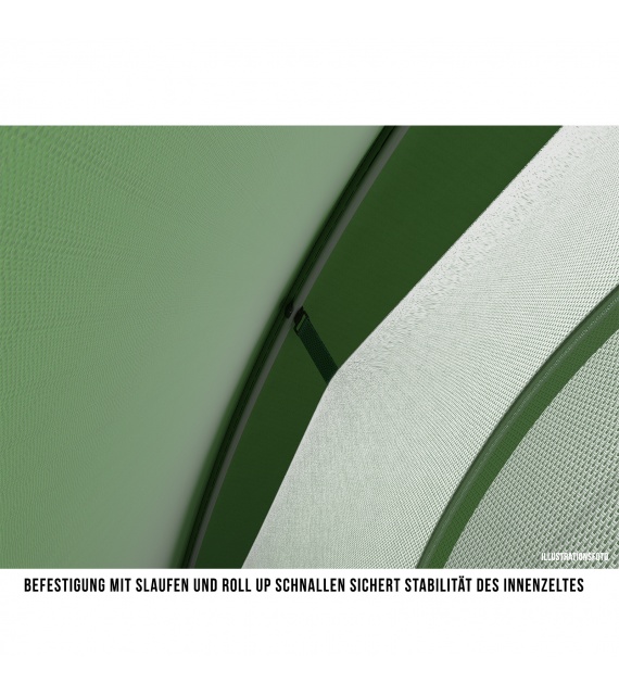 Het zachte, ademende en toch sterke materiaal van de klamboe zorgt ervoor dat de lucht in de tent beter kan circuleren. Dit zorgt voor een goede ventilatie.