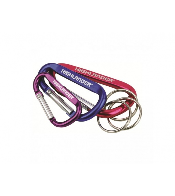 Set van drie karabijnhaken met sleutelringen. Geschikt voor het ophangen van kleine spullen zoals sleutels, een camera, mes enz. Niet bedoeld om mee te klimmen.