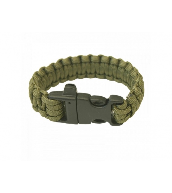 De PARACORD armband is gevlochten van meerdere meters hoogwaardig nylon koord, dat tot 250 kg kan dragen. De armband is verbonden met een kunststof sluiting (drietand) met ingebouwd fluitje. De armband kan worden ontward en het koord kan worden gebruikt om een onderkomen te bouwen, voor abseilen in noodgevallen of als reserve schoenveters.