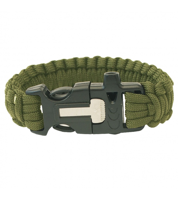 De PARACORD armband is gevlochten van meerdere meters hoogwaardig nylon koord, dat tot 250 kg kan dragen. De armband is verbonden met een kunststof sluiting (drietand), waarin een fluitje en een vuursteen zijn ingebouwd. De armband kan worden ontward en het koord kan worden gebruikt om een onderkomen te bouwen, voor abseilen in noodgevallen of als reserve schoenveters.