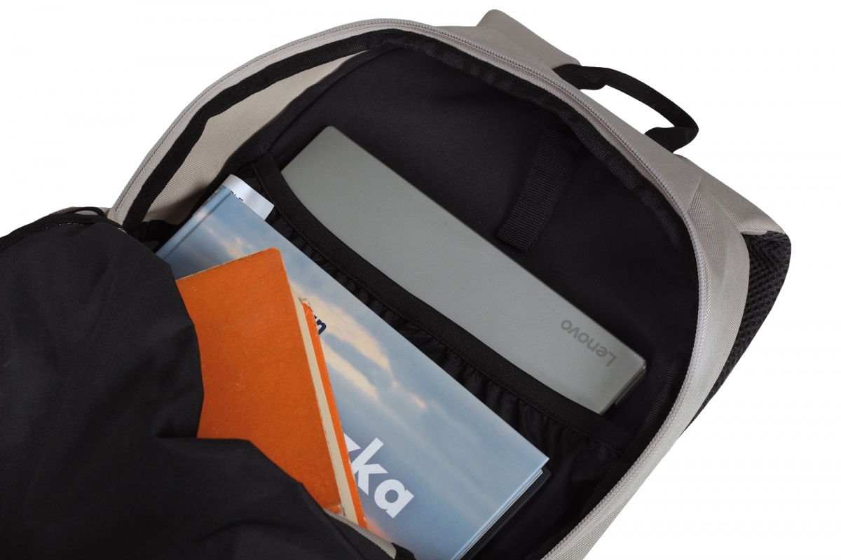 • Kenmerken van de Nera rugzak: hoofdcompartiment, borstband, laptopvak, klein voorvak, voorvak met gaas, 2 zijvakken met gaas voor een fles.