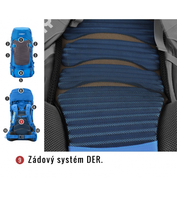 Een zeer comfortabel, in hoogte verstelbaar rugsysteem dat anatomisch gevormd is. De hoogte kan hier gemakkelijk worden aangepast aan je behoeften. Het is gemaakt van EVA-schuim gecombineerd met 3D mesh om een goede pasvorm op de rug te garanderen en comfortabele ventilatie in dit gebied mogelijk te maken door de juiste vormgeving. Dit systeem zorgt ook voor voldoende stevigheid en een juiste gewichtsverdeling.