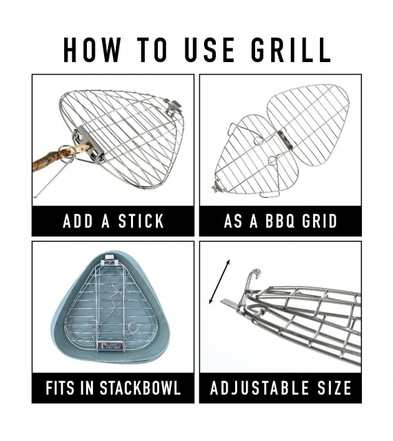 Compact, praktisch, draagbaar en een geweldige manier om je outdoor avonturen uit te breiden met deze verstelbare en veelzijdige FireGrill. Bevestig hem eenvoudig aan een stok en je kunt beginnen met grillen. Je kunt er van alles in doen, van vis tot groenten, hamburgers of toast. Serveer jezelf, je vrienden en familie een fantastische maaltijd bereid op open vuur! Het opvouwbare rooster kan ook worden uitgeklapt tot een grotere grillbasis. Haal het maximale uit je avontuur, betrek de kinderen erbij en heb plezier. Van roestvrij staal, eenvoudig schoon te maken en past in een MealKit wanneer het tijd is om in te pakken.