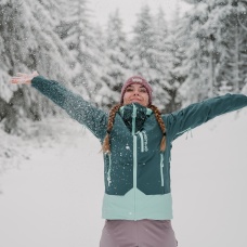 Medium gevoerde hardshell jas voor vrouwen geschikt voor skiën, winterwandelingen en andere sportieve activiteiten.