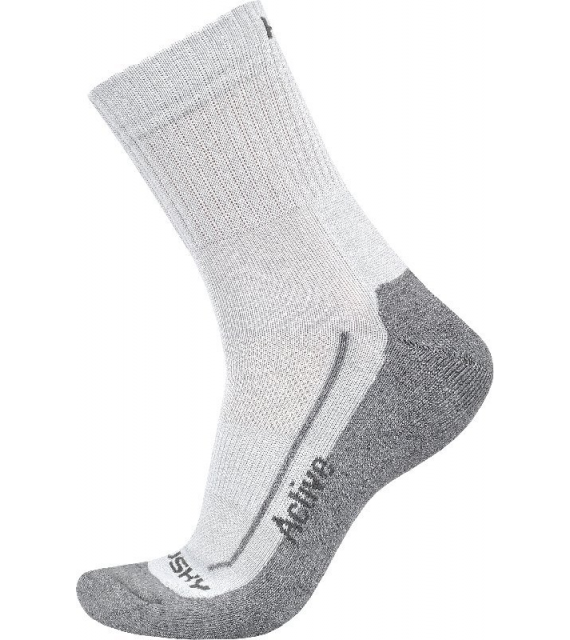 Active zijn dunne sokken die tot boven de enkel reiken. Ze hebben een versterkt voetgedeelte voor een zacht loopvlak en een versterkt teengedeelte om uitglijden te voorkomen. Ze zijn gemaakt van een mix van vezels die zorgen voor comfort tijdens lichte activiteiten én actief bewegen.
