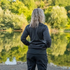 Dikker dames trui met rits geschikt voor allerlei outdooractiviteiten zoals wandelen.