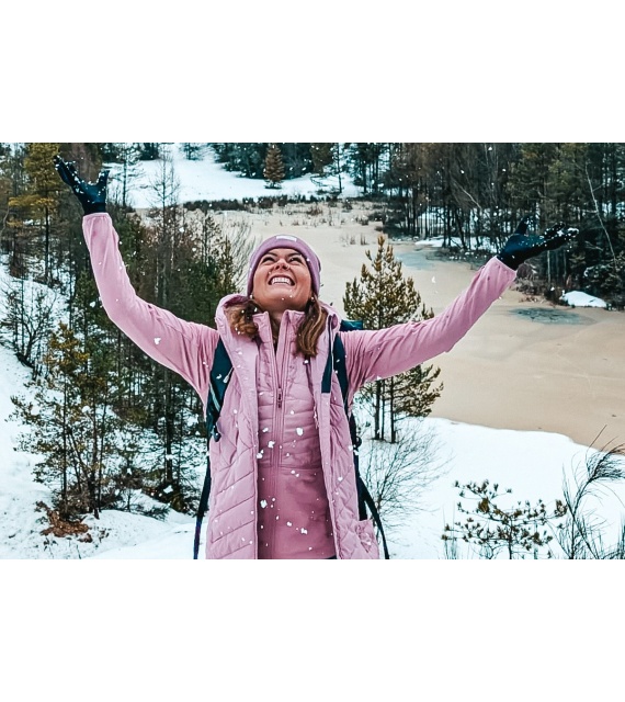 • De waterafstotende DWR-behandeling van het materiaal in het bovenste ge?soleerde deel van het sweatshirt voorkomt dat vocht binnensijpelt en zorgt ervoor dat water onmiddellijk van het oppervlak afloopt in de vorm van parels.