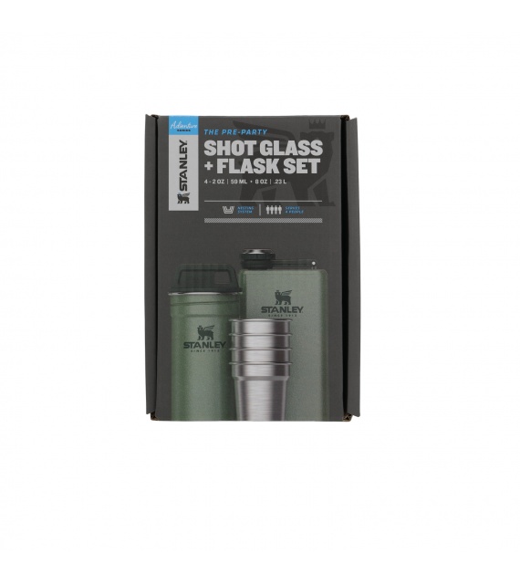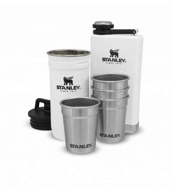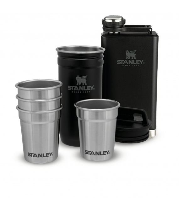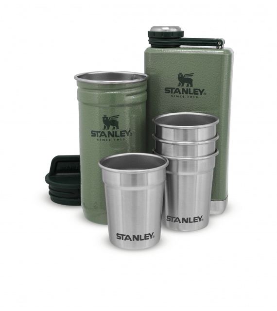 De Stanley geschenkset met 4 roestvrijstalen shots in een handige reisverpakking + veldfles zal door elke man die graag met vrienden in de natuur is worden gewaardeerd.