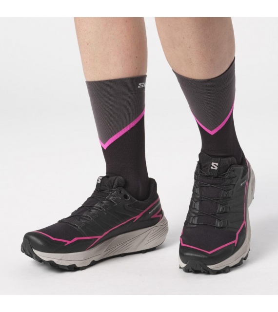 THUNDERCROSS GORE-TEX is een waterdichte trailschoen voor een dynamische, gedempte stap met uitzonderlijke grip en steun voor de voet. Hij beschikt over agressieve, 5 mm hoge noppen om elk terrein aan te kunnen, hoe verraderlijk, technisch of onaangenaam het ook is. Ze zijn ontwikkeld in de Franse Alpen en beproefd op alle soorten ondergrond, van heuvelachtig terrein tot rotsachtige hellingen en gladde singletracks.