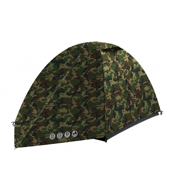 Lichtgewicht tent voor twee personen, geschikt voor kamperen op een camping of in de vrije natuur en andere outdooractiviteiten.