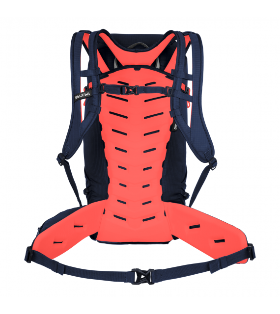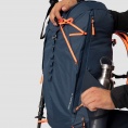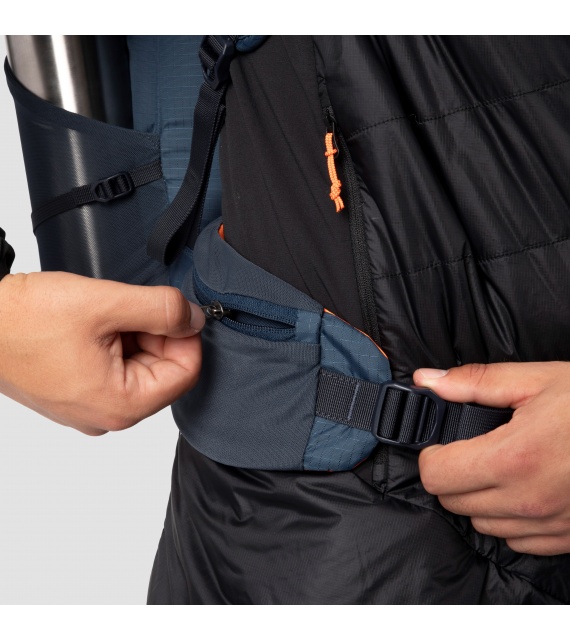 Het Dry Back Contact draagsysteem houdt de last dicht bij je lichaam, maar zorgt er toch voor dat je rug droog blijft. Dit wordt bereikt door een hogere transpiratie per cm² mogelijk te maken dan bij traditionele constructie en de temperatuur in het centrale ruggedeelte te verlagen dankzij een kleiner contactoppervlak en 3D-luchtkanalen. Het dubbele compressiesysteem en de omwikkelbare heupband – met lus voor via ferrata-karabijnhaken en een gaasvak – zorgen voor een veilige bevestiging en optimale controle over de last. Voor stabiliteit en controle omvat ons geavanceerde dubbele compressiesysteem (TCS) compressie aan de boven- en onderkant voor eenvoudige volumeaanpassing, zodat je de last altijd kunt stabiliseren en centreren. En de gedeelde lichtgewicht schouderbanden zorgen voor meer bewegingsvrijheid voor je armen en verminderen het lichaamscontact, wat meer comfort oplevert als je zweet en een betere luchtstroom bevordert.