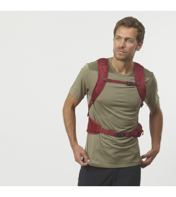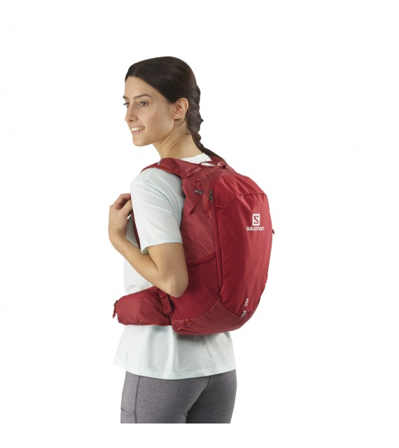 Eenvoudig ontwerp, een licht gewicht en maximaal draagcomfort – dat is in het kort wat de Salomon Trailblazer 20 rugzak je biedt. Dankzij de inhoud van 20 liter kun je hem gebruiken voor dagelijkse outdoor activiteiten en in de stad. De rugzak heeft een minimalistisch design met strakke lijnen, is gemaakt van hoogwaardige materialen en zit perfect. Binnenin is er voldoende ruimte voor een laptop (speciaal vak) en een waterzak. De rugzak heeft ook meerdere kleine vakken om kleine spullen in op te bergen. De brede onderband met verstelbare sluiting aan de voorkant, de elastische borstband, de brede versterkte schouderbanden en de achterkant van de rugzak zorgen voor extra draagcomfort. De rugzak heeft ook een lus voor het bevestigen van trekkingstokken en een reflecterende lus voor het bevestigen van een knipperlicht.