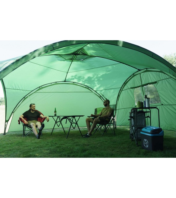De Broof L tarp is ideaal voor allerlei outdoorevenementen. Hij beschermt zowel tegen de zon als tegen regen. Dankzij de stabiele constructie en het verankeringssysteem is hij bestand tegen winderig weer en kun je meer tijd samen doorbrengen in de frisse lucht. Deze enkelwandige tarp met binnenconstructie wordt geleverd zonder wanden, die HIER apart kunnen worden bijgekocht.