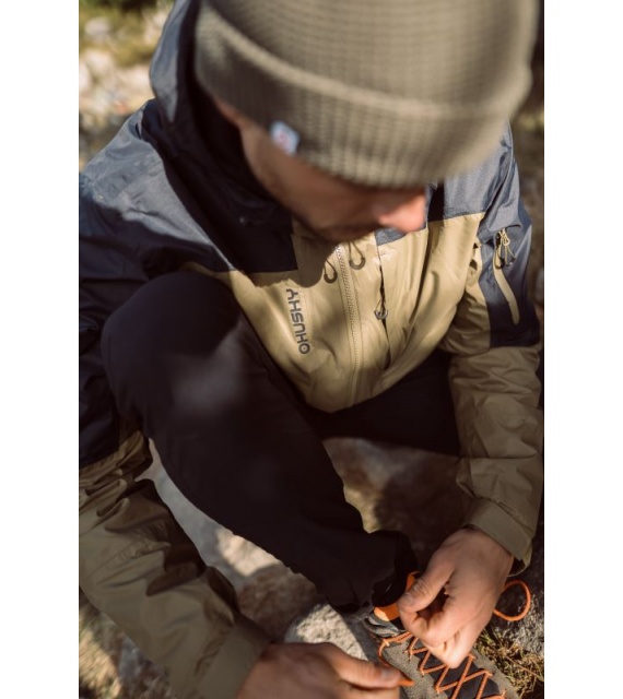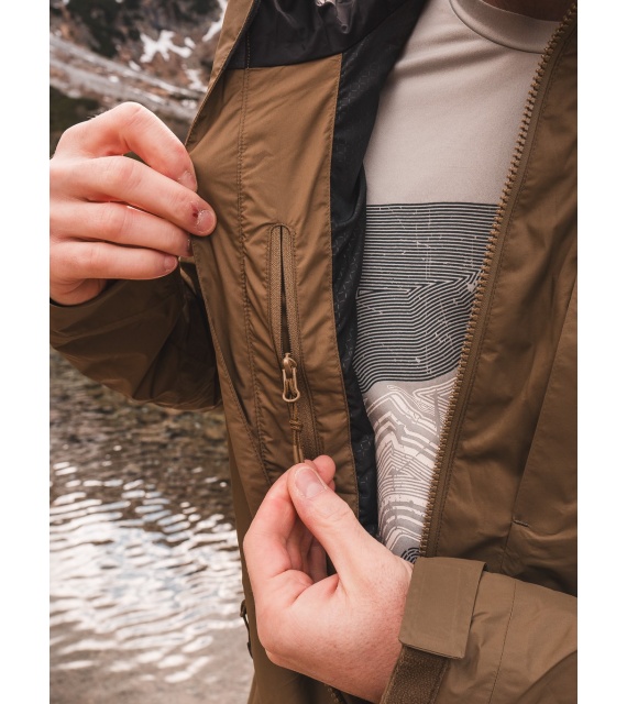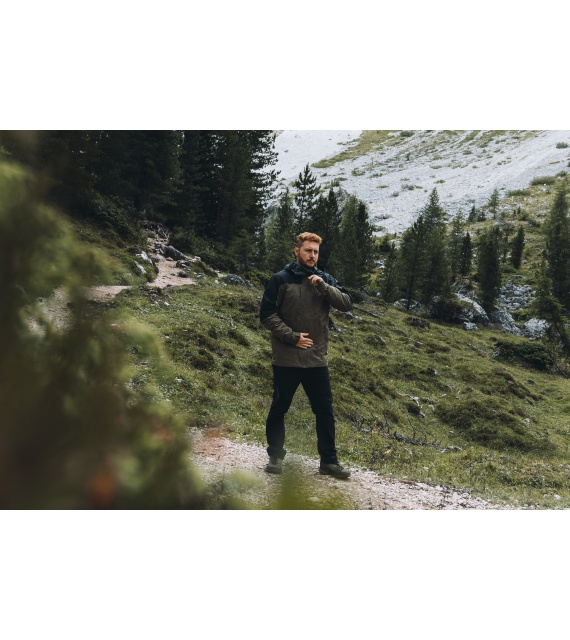 Functioneel hardshell herenjas met een membraan, geschikt voor veeleisende omstandigheden, maar ook voor klassieke wandeltochten en dagelijks gebruik in de stad.