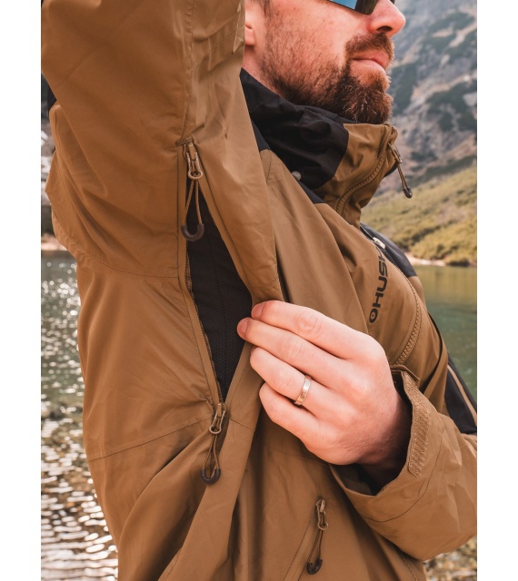Functionele hardshell jas met membraan geschikt voor wandeltochten én zware omstandigheden.