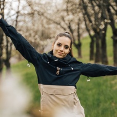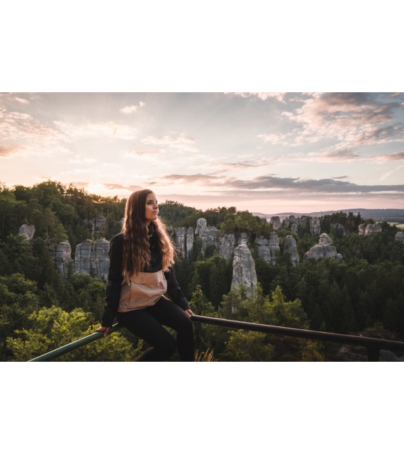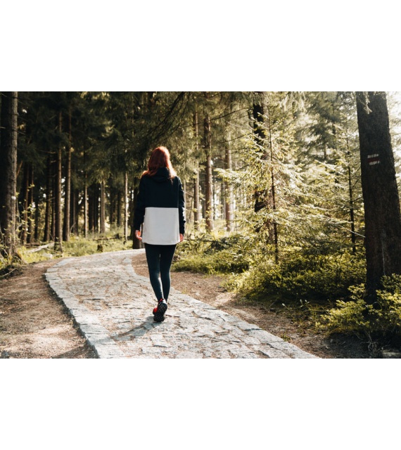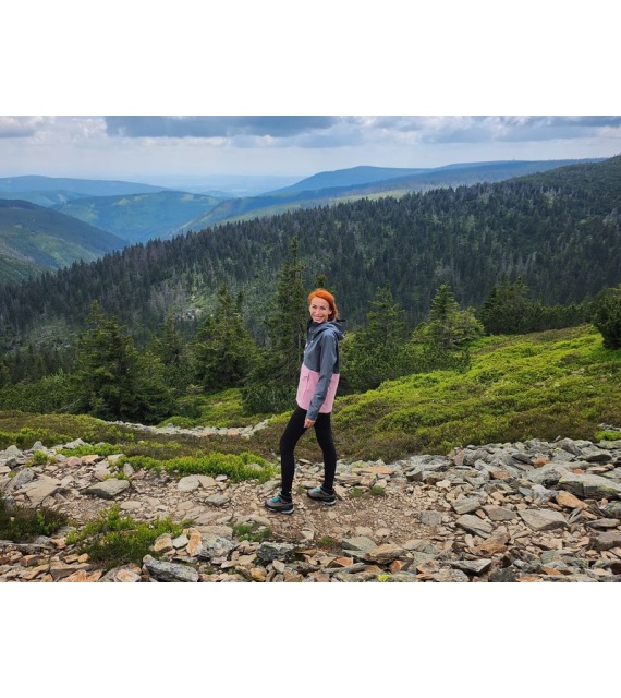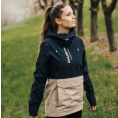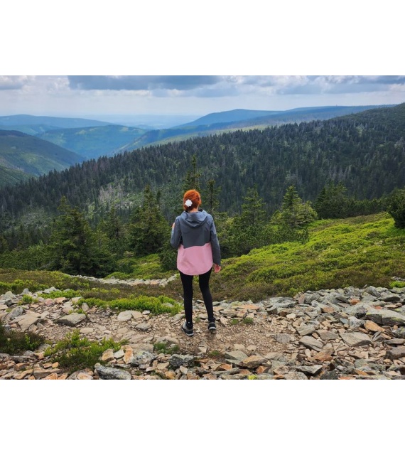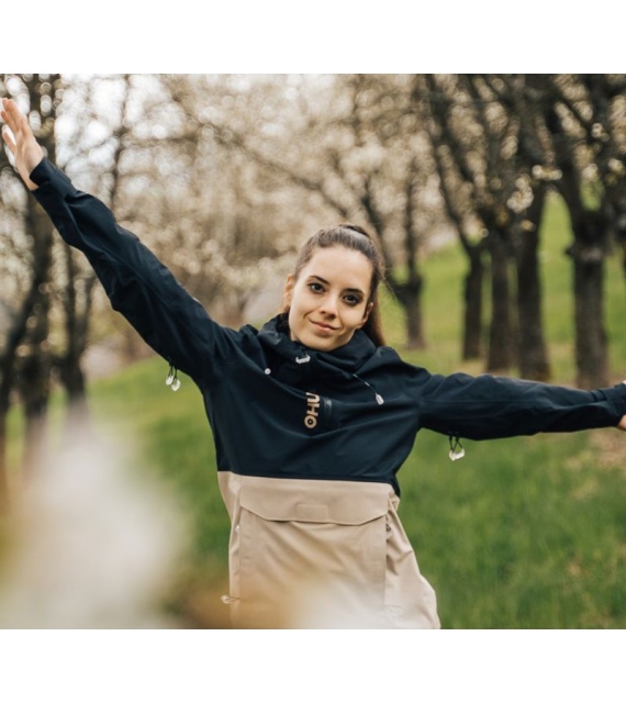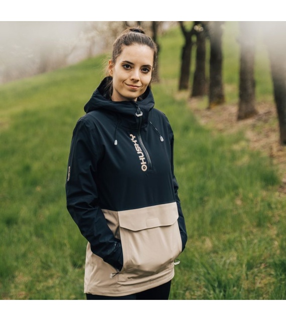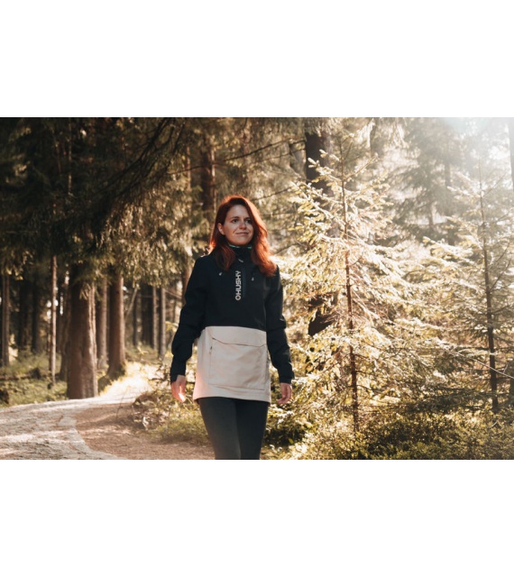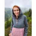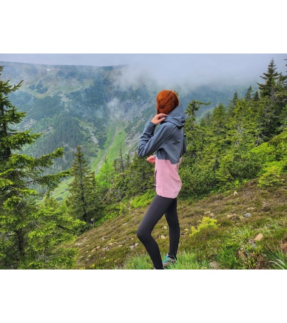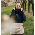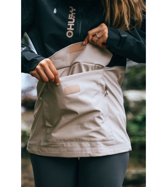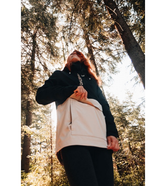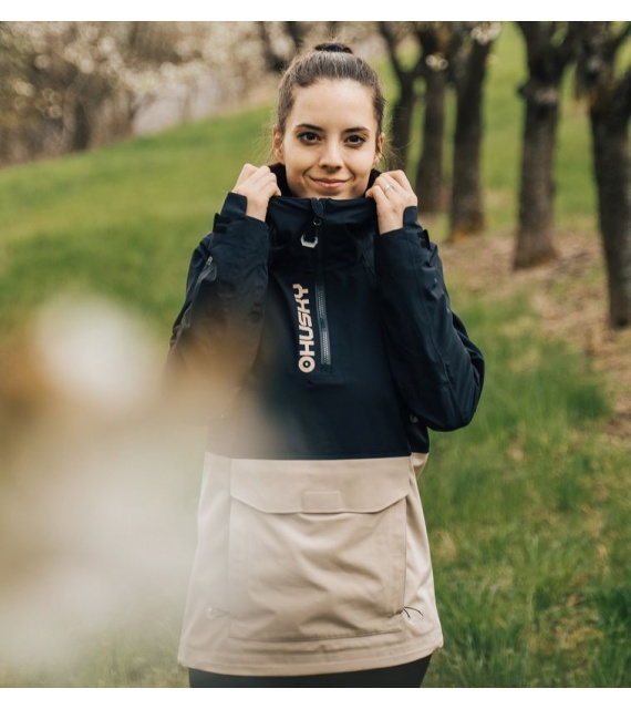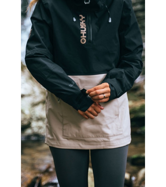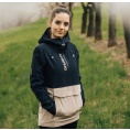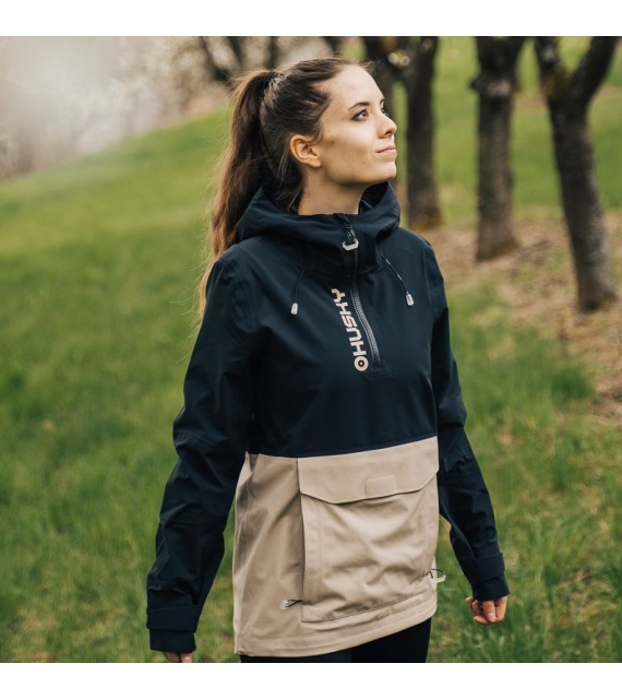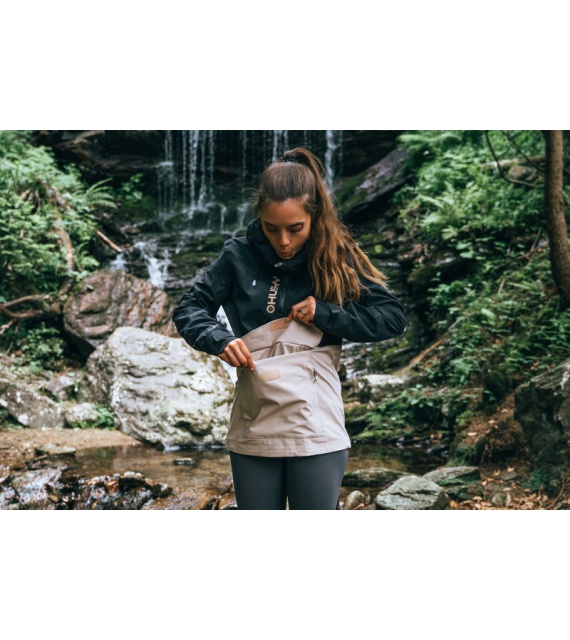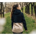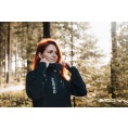 Zeer functionele damesjas met kangoeroezak die het hele jaar door gebruikt kan worden voor outdooractiviteiten, zelfs in zware omstandigheden.
