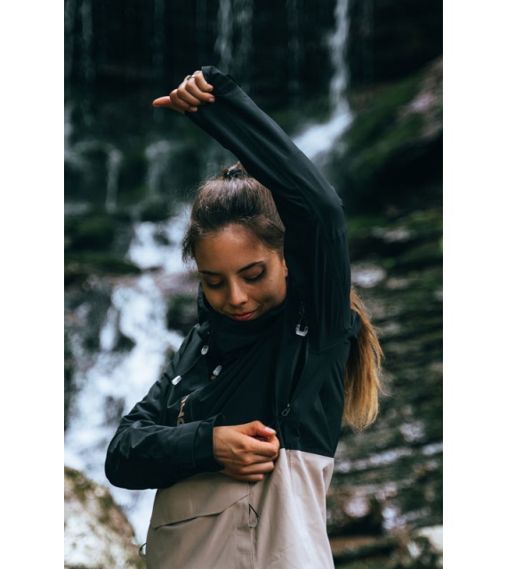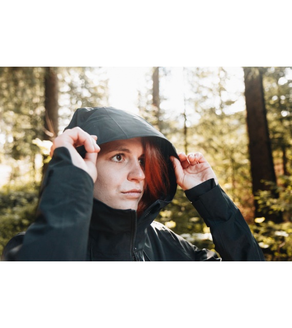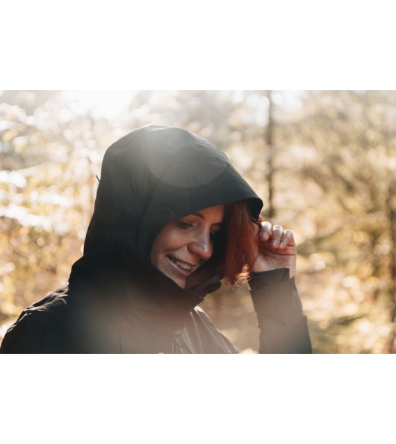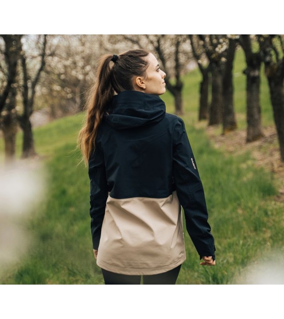 Multifunctionele dames outdoorjas met capuchon om het hele jaar door te gebruiken in zware omstandigheden en zowel tijdens wandelingen in de natuur als in de stad te dragen.